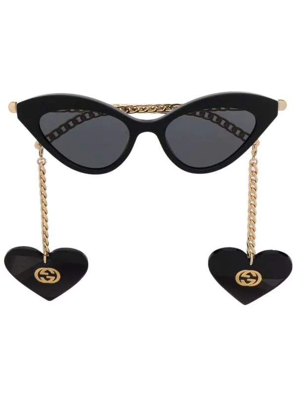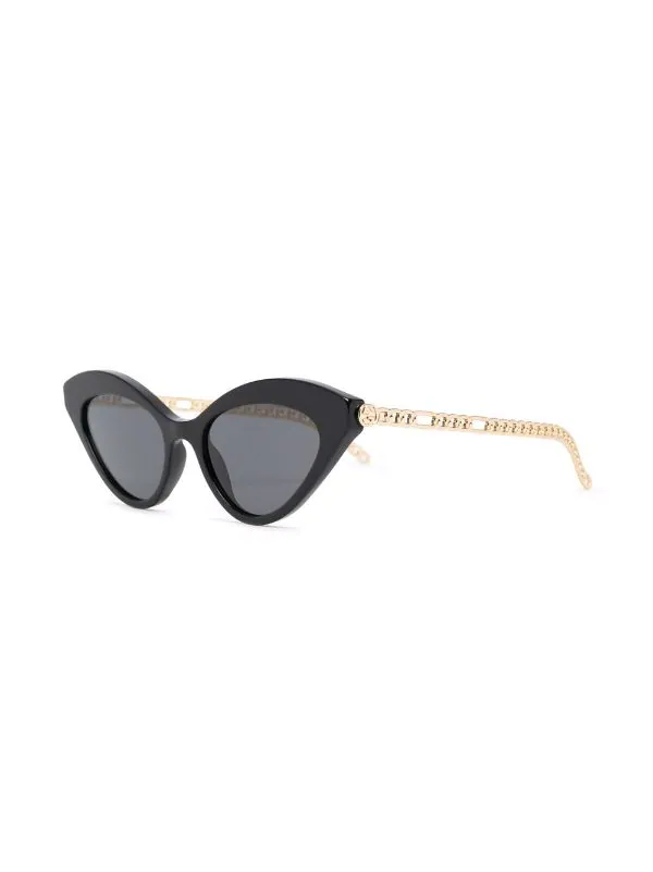 Monture papillon, verres teintés, détails de chaînes, finitions en métal doré. Couleur : noir. Matière : acétate.