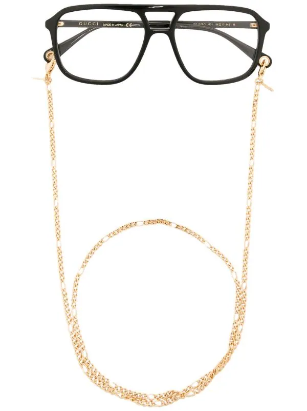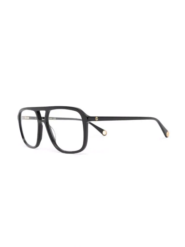 Finitions en métal doré, double pont, monture aviateur, branches incurvées. Couleur : noir. Ces lunettes sont livrées avec un étui de protection.