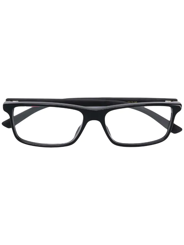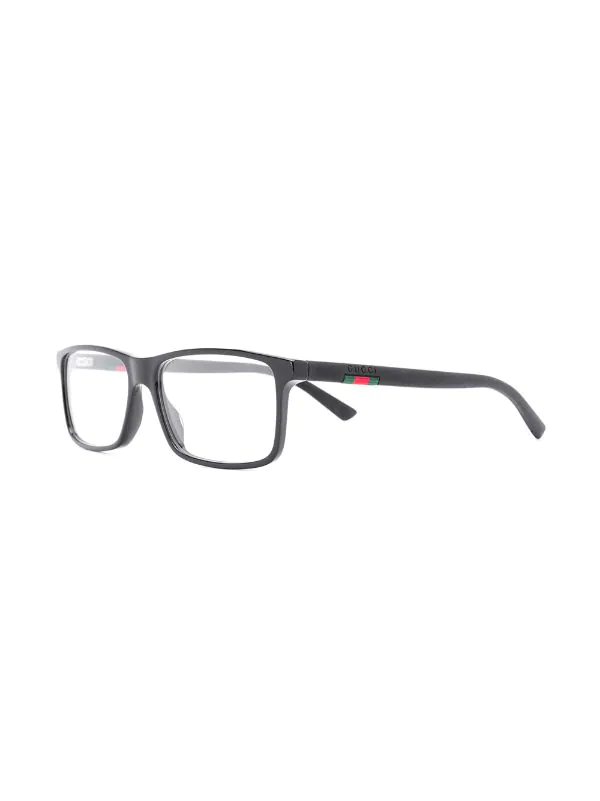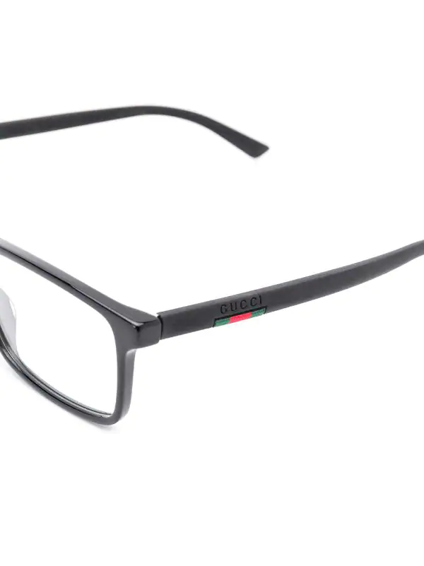 Lunettes de vue à monture rectangulaire en acétate Gucci Eyewear avec logo latéral et branches droites à extrémités incurvées. Couleur : noir. Ce produit est vendu dans une boîte de protection.