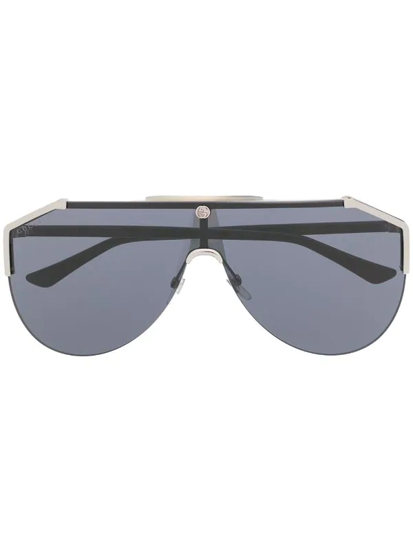 Lunettes de soleil à monture aviateur en titane Gucci Eyewear avec verres teintés, branches droites à extrémités angulaires, logo sur les branches et détails argentés. Couleur : noir.