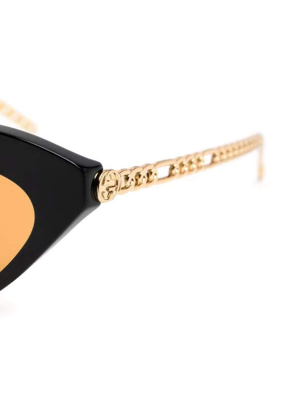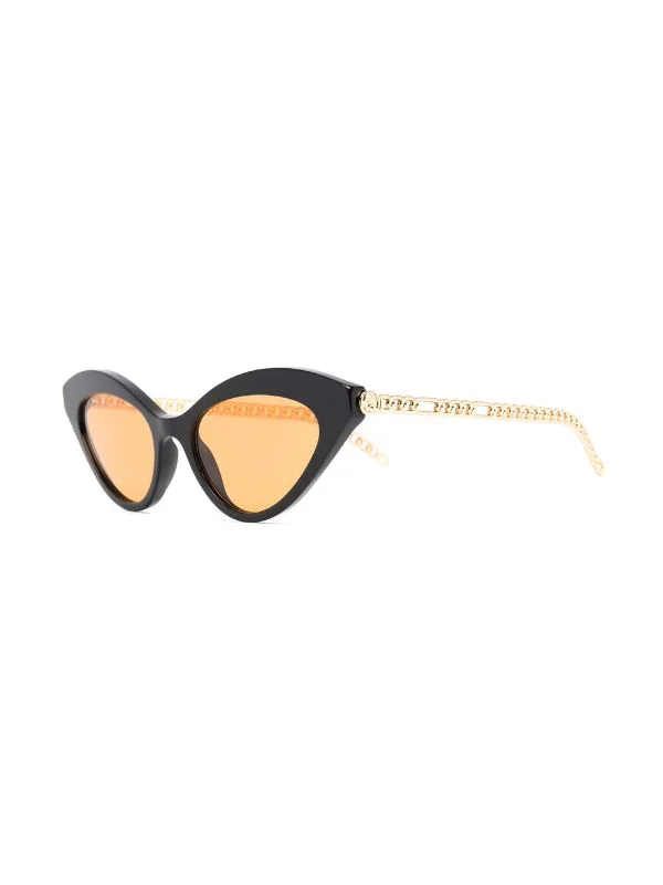 Monture papillon, verres teintés, détails de chaînes, finitions en métal doré. Couleur : noir. Matière : acétate.
