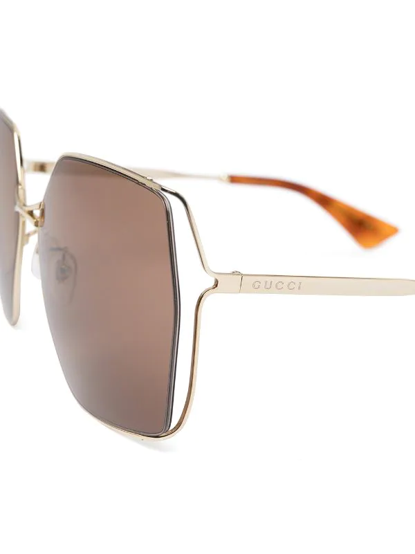 Monture oversize, branche à logo embossé, verres teintés marron, plaquettes de nez. Matière : métal. Même s’il est évident que vous en prendrez bien soin, cet article vous parviendra dans une boîte de protection..
