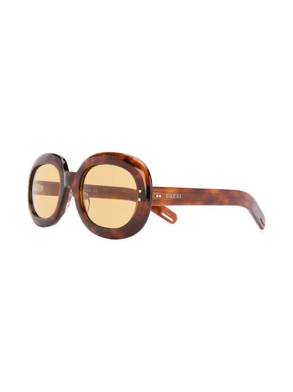 Lunettes de vue à monture ovale Gucci Eyewear avec verres teintés, logo latéral et branches droites à extrémités angulaires. Ce produit est vendu dans une boîte de protection.