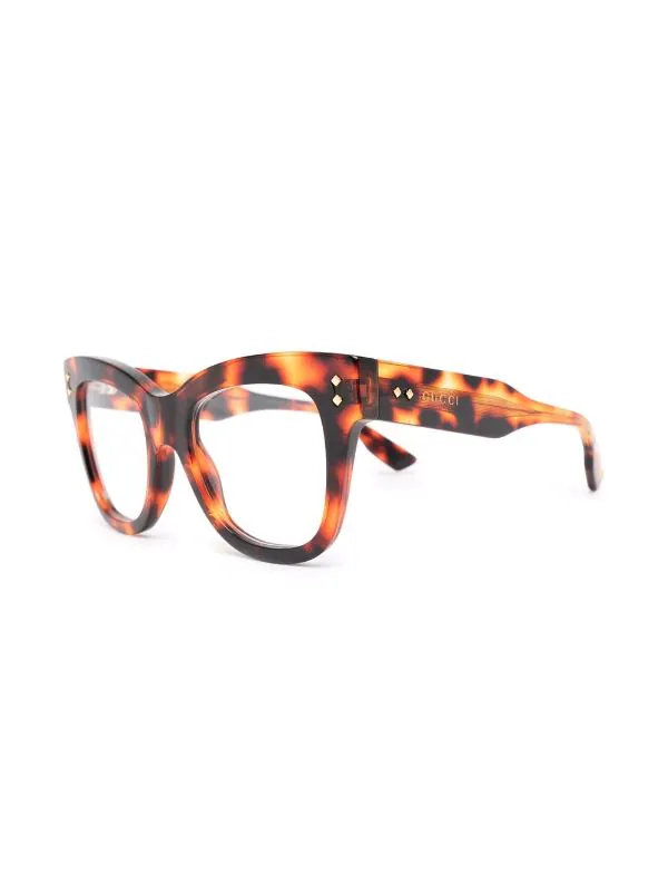 Effet écaille de tortue, monture papillon, branches sculptées. Ces lunettes sont livrées avec un étui de protection.