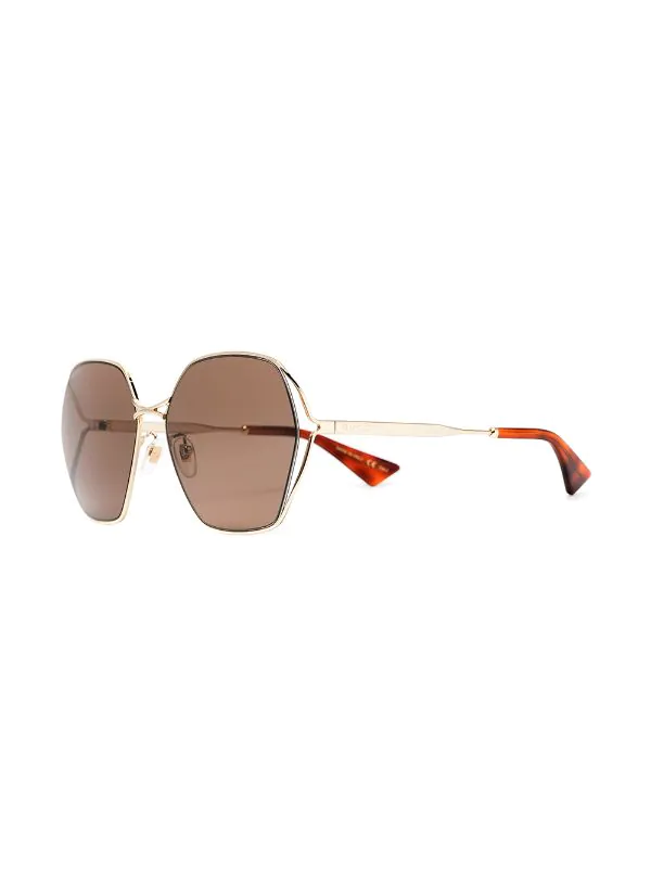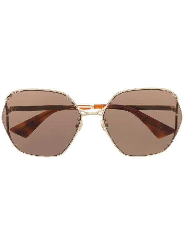 Monture oversize, branche à logo embossé, verres teintés marron, plaquettes de nez. Matière : métal. Même s’il est évident que vous en prendrez bien soin, cet article vous parviendra dans une boîte de protection..