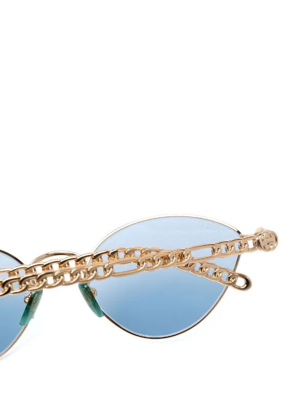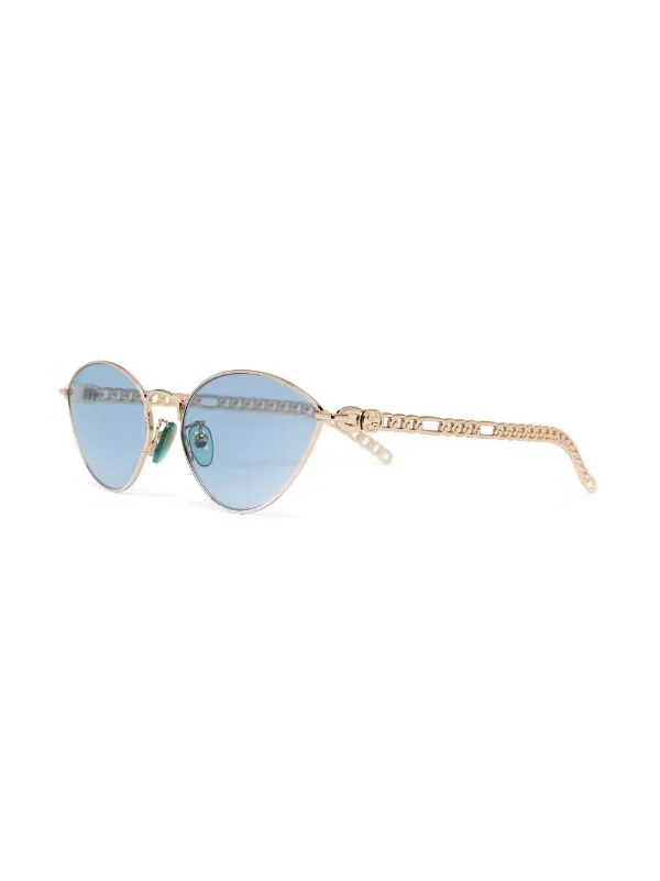 Monture papillon, verres teintés bleus, verres filtre UV, plaquettes de nez, branches droites, extrémités incurvées, breloque à logo. Même s’il est évident que vous en prendrez bien soin, cet article vous parviendra dans une boîte de protection.