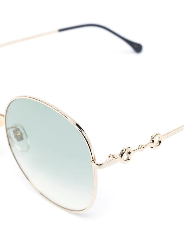 Finitions en métal doré, monture ronde, verres dégradés, plaquettes de nez, détail de mors signature, branches droites, logo gravé, branches droites. Matière : métal. Même s’il est évident que vous en prendrez bien soin, cet article vous parviendra dans une boîte de protection. Gardez l’œil ouvert : toutes les lunettes achetées sur FARFETCH sont fournies avec des verres sans prescription.