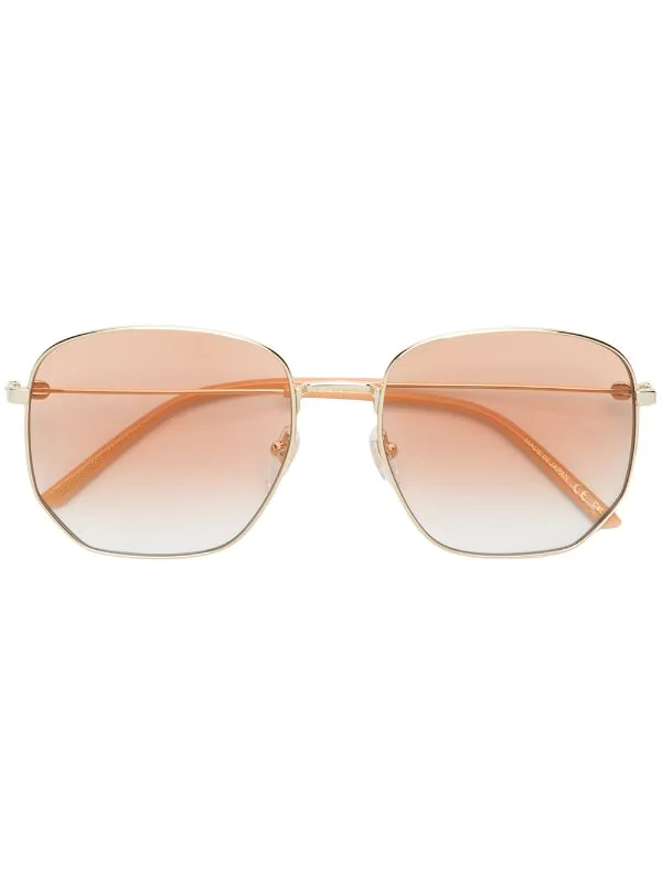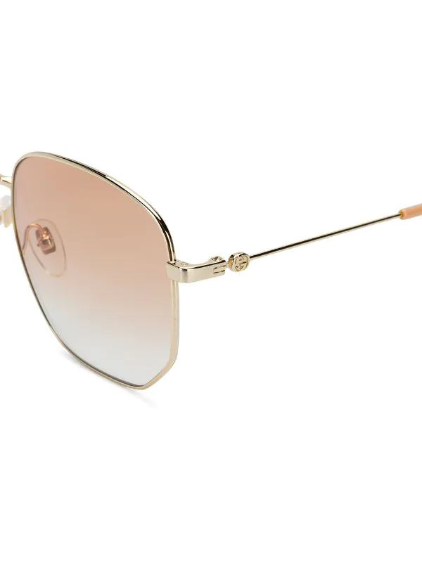 Lunettes à monture rectangulaire dorée Gucci Eyewear avec verres dégradés, logo latéral et branches droites à extrémités angulaires. Cet article est unisexe.