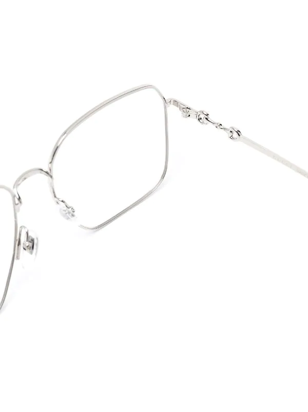 Détail de mors signature, monture carrée, verres transparents, logo gravé sur la branche, plaquettes de nez, branches droites, extrémités incurvées. Matière : métal. Ouvrez l’œil et le bon : toutes les lunettes achetées sur FARFETCH sont fournies avec des verres sans prescription. Même s’il est évident que vous en prendrez bien soin, cet article vous parviendra dans une boîte de protection.