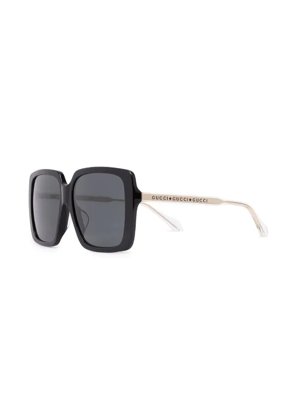 Noir, modèle bicolore, monture oversize, logo gravé sur la branche, extrémités incurvées. Ces lunettes sont livrées avec un étui de protection.