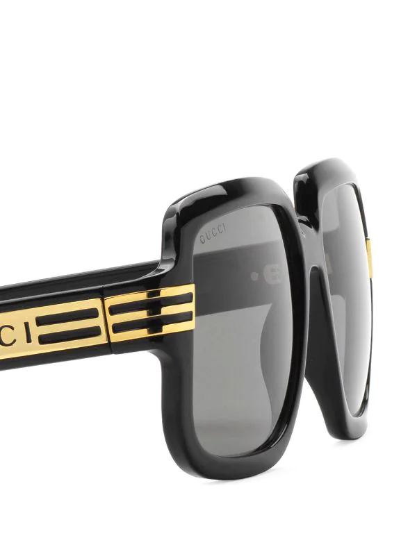 Branche à logo imprimé, monture oversize, verres teintés gris, verres filtre UV, extrémités incurvées. Même s’il est évident que vous en prendrez bien soin, cet article vous parviendra dans une boîte de protection.