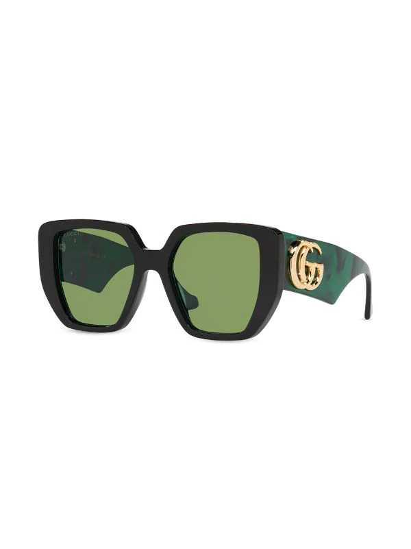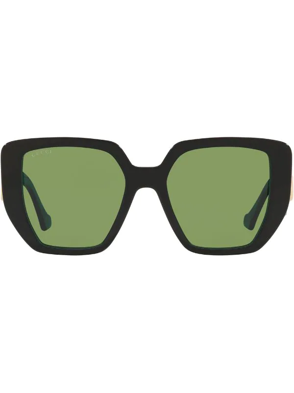Plaque logo Double G signature, finitions en métal doré, monture oversize, verres teintés verts. Couleur : vert. Ces lunettes sont livrées avec un étui de protection.