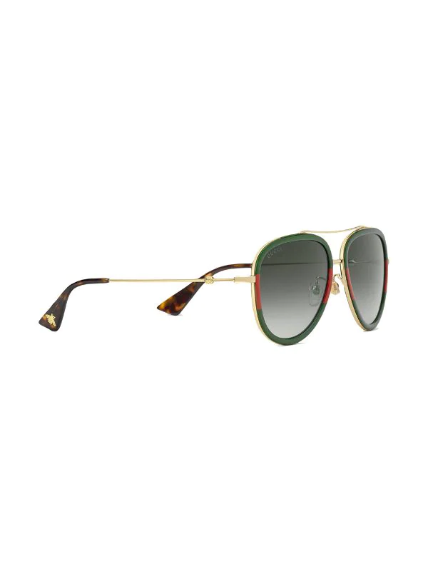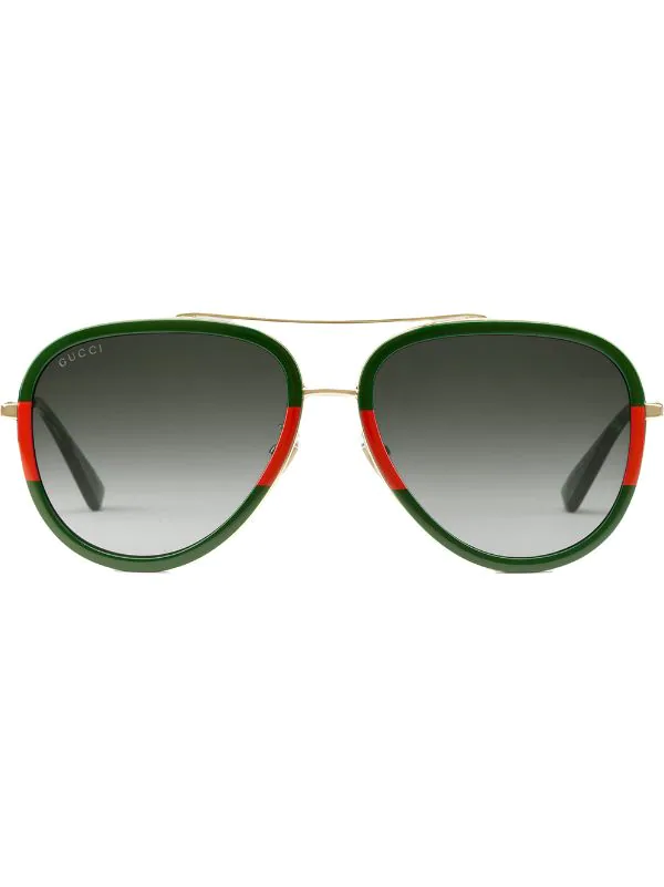 Lunettes de soleil en métal vert et rouge à monture aviateur bicolore Gucci Eyewear avec détail Web vert et rouge et verres dégradés. Ce produit est vendu dans une boîte de protection.