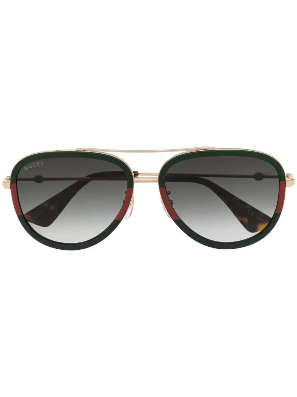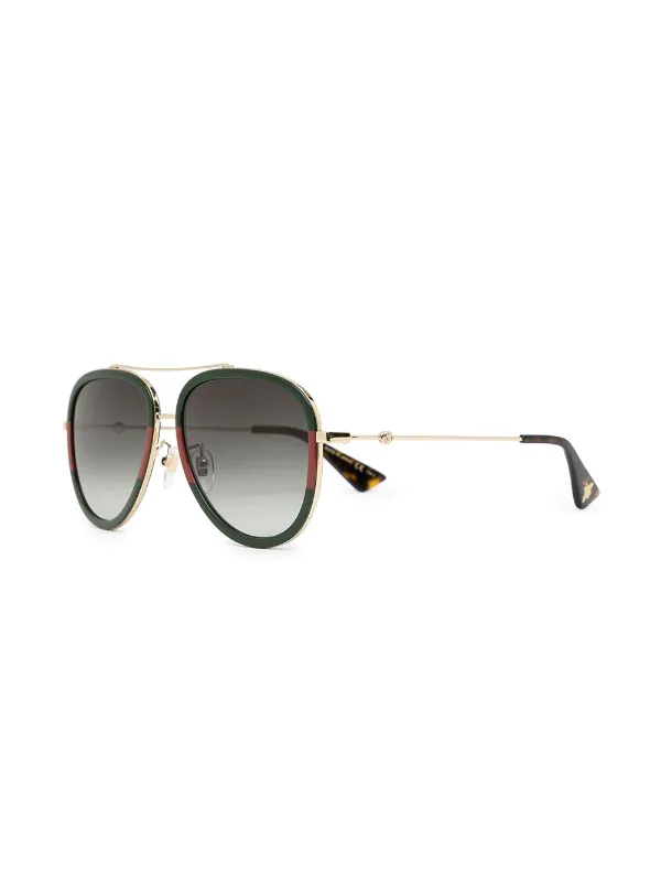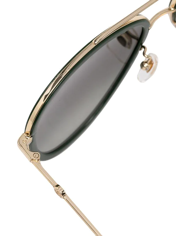 Monture aviateur, finitions en métal doré, verres teintés, verres dégradés, plaquettes de nez, branches incurvées, verres filtre UV. Couleur : noir. Ces lunettes sont livrées avec un étui de protection.
