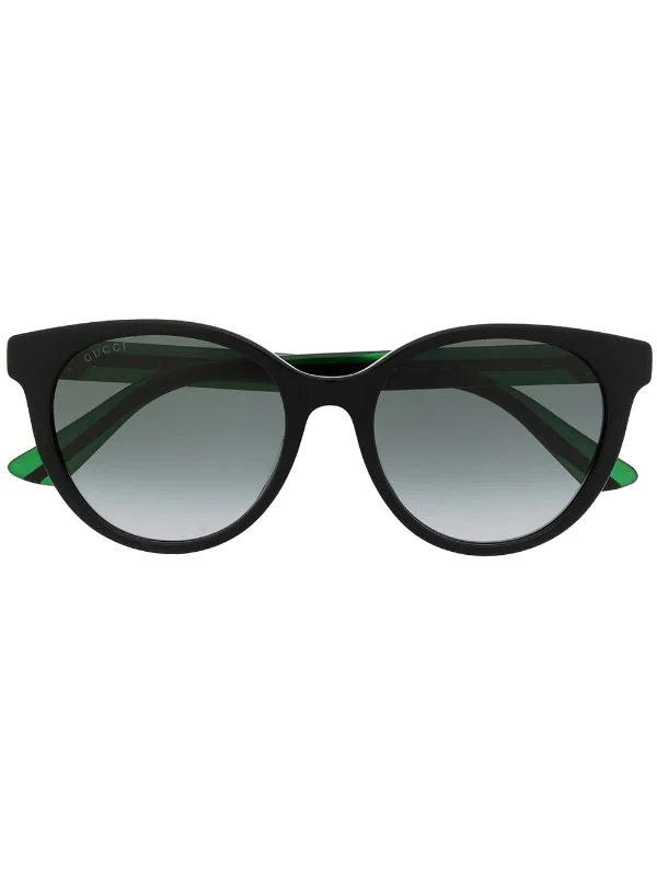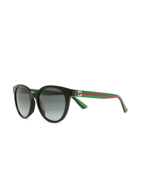 Noir, détail Web signature, logo GG signature, monture ronde, verres dégradés, extrémités incurvées. Ces lunettes sont livrées avec un étui de protection.