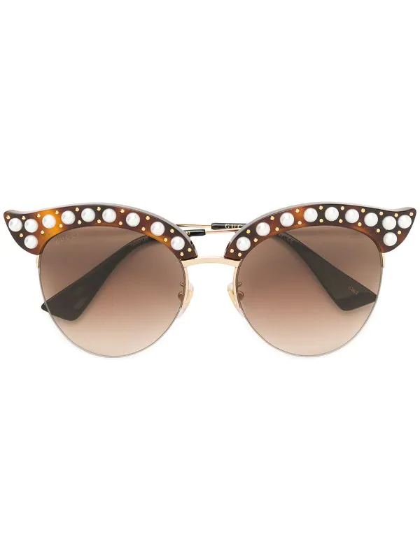 Lunettes de soleil à ornements en acétate marron Gucci Eyewear avec ornement en perle, monture ovale et effet écaille de tortue. Ce produit est vendu dans une boîte de protection.