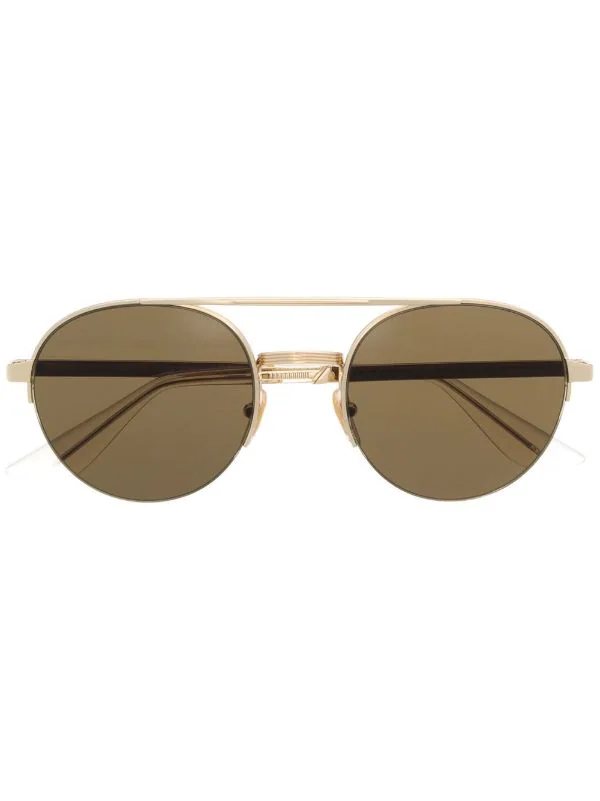 Monture aviateur, verres teintés, double pont, logo gravé sur la branche. Matière : métal. Ces lunettes sont livrées avec un étui de protection.
