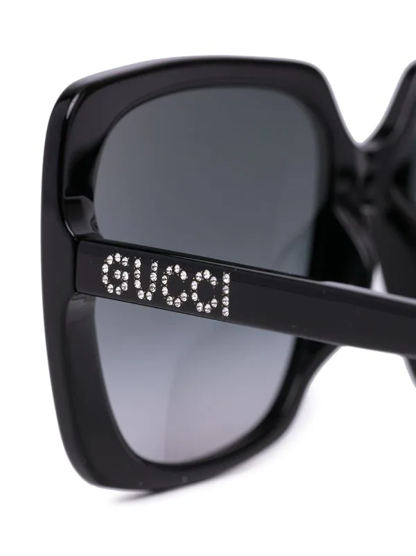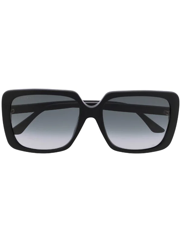 Noir, monture rectangulaire, verres dégradés, logo gravé sur la branche, extrémités incurvées. Ces lunettes sont livrées avec un étui de protection.