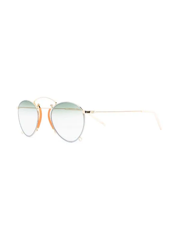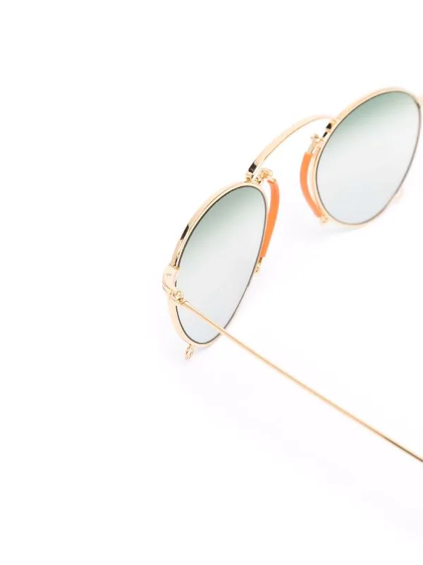 Finitions en métal doré, verres teintés, monture aviateur. Matière : métal. Ces lunettes sont livrées avec un étui de protection.