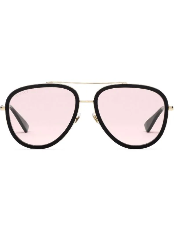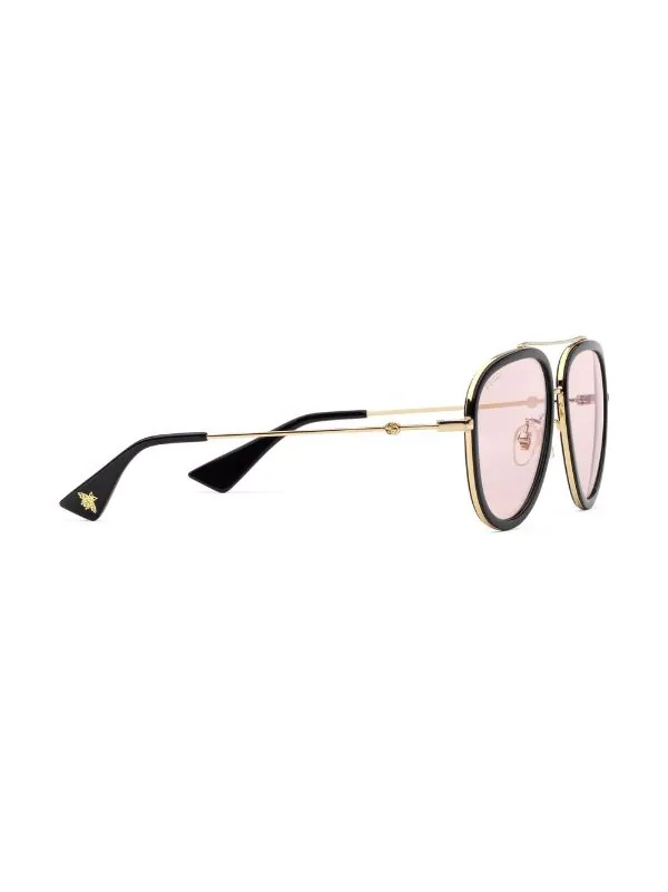 Monture aviateur, verres teintés roses, plaquettes de nez, plaque logo sur la branche. Ces lunettes sont livrées avec un étui de protection.