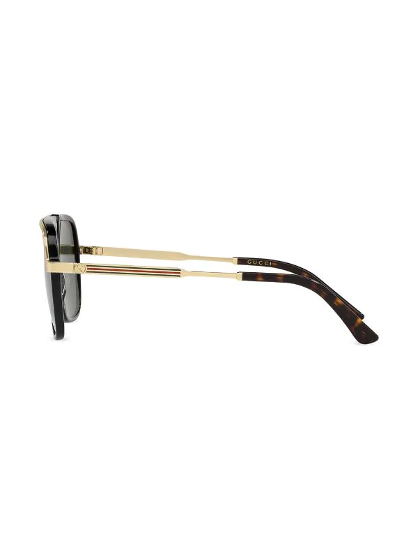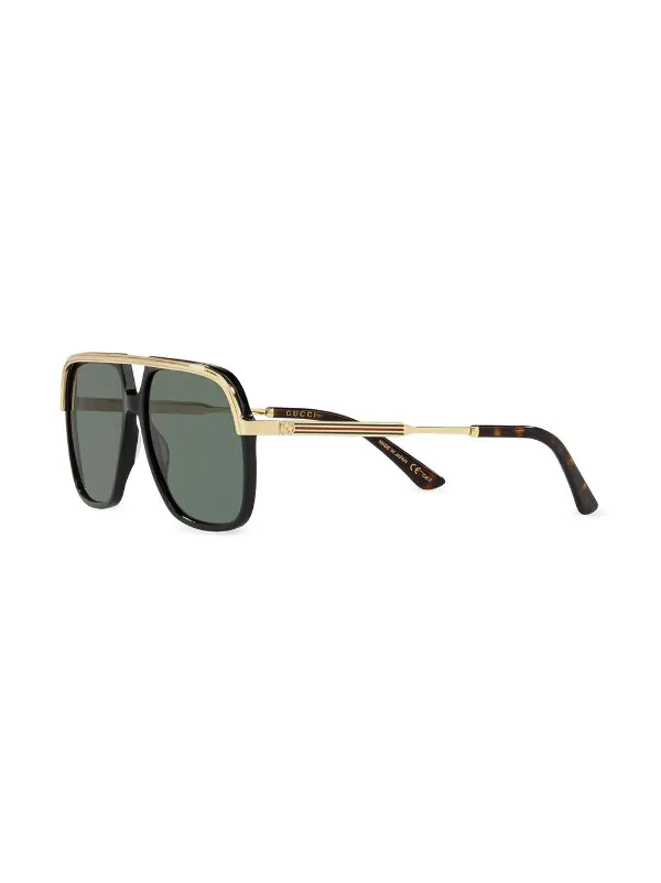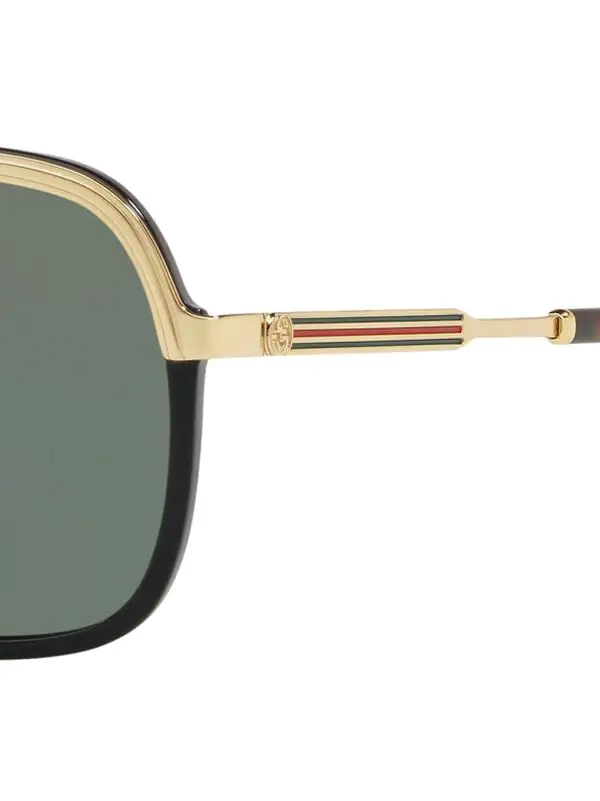 Monture aviateur, verres teintés verts, logo GG signature, détail Web signature, verres filtre UV. Matière : métal. Gardez l’œil ouvert : toutes les lunettes achetées sur FARFETCH sont fournies avec des verres sans prescription. Même s’il est évident que vous en prendrez bien soin, cet article vous parviendra dans une boîte de protection..