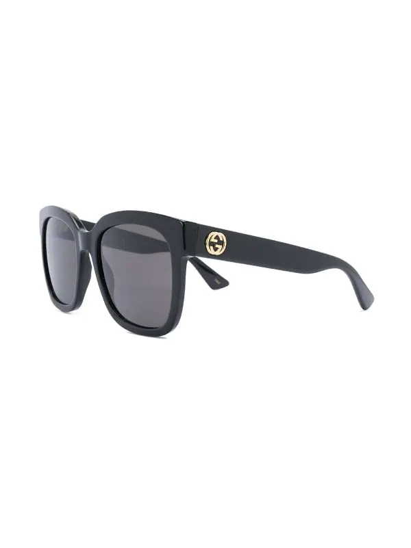 Lunettes de soleil à monture carrée Gucci Eyewear avec monture carrée, verres teintés, protection UVA et UVB 100%, un logo autocollant sur le verre, un logo GG et branches droites à extrémités incurvées. Couleur : noir. Ce produit est vendu dans une boîte de protection.