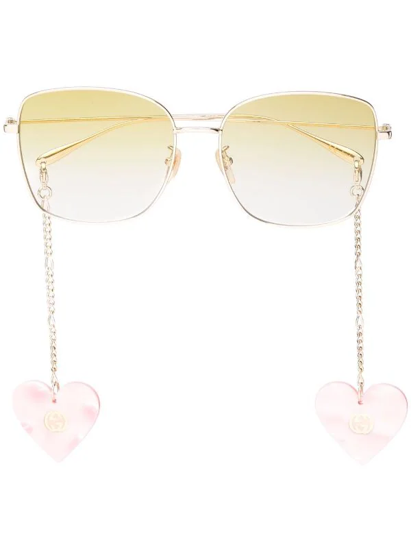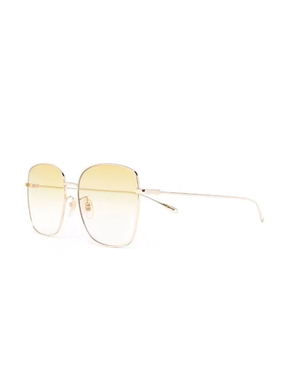 Monture carrée, verres dégradés, branches droites, extrémités incurvées, détails de chaînes. Couleur : or. Matière : métal. Ces lunettes sont livrées avec un étui de protection.