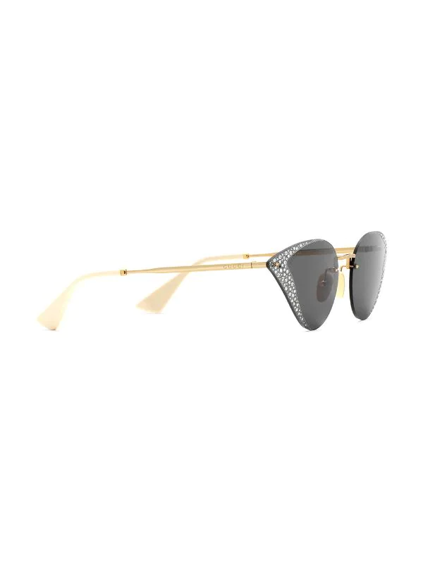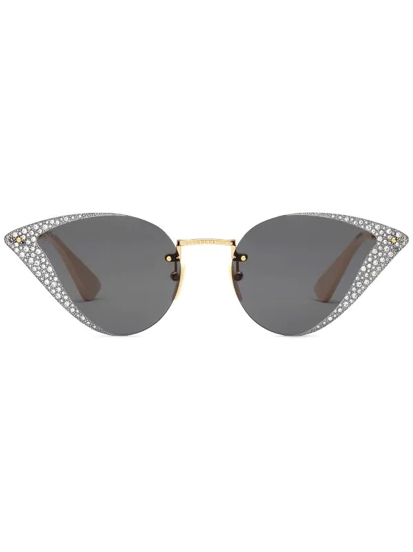 Monture géométrique, verres teintés gris, ornement en cristal, logo gravé sur la branche, plaquettes de nez, verres filtre UV. Matière : métal. Ouvrez l’œil et le bon : toutes les lunettes achetées sur FARFETCH sont fournies avec des verres sans prescription. Même s’il est évident que vous en prendrez bien soin, cet article vous parviendra dans une boîte de protection.