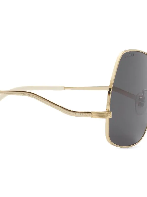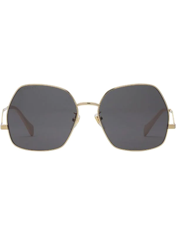 Verres filtre UV, verres teintés gris, verre à détail de décalque, monture géométrique, plaquettes de nez, logo gravé sur la branche, branches sculptées, extrémités incurvées. Matière : métal. Même s’il est évident que vous en prendrez bien soin, cet article vous parviendra dans une boîte de protection.