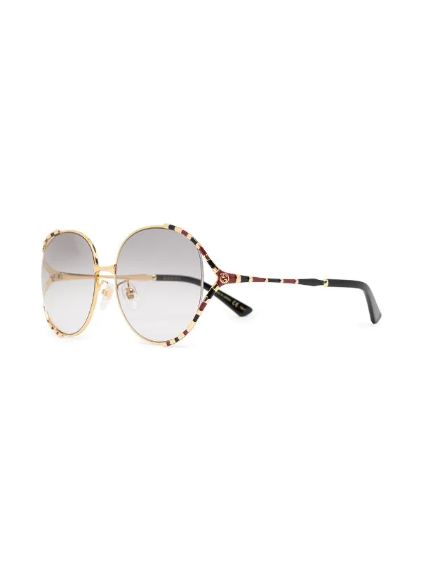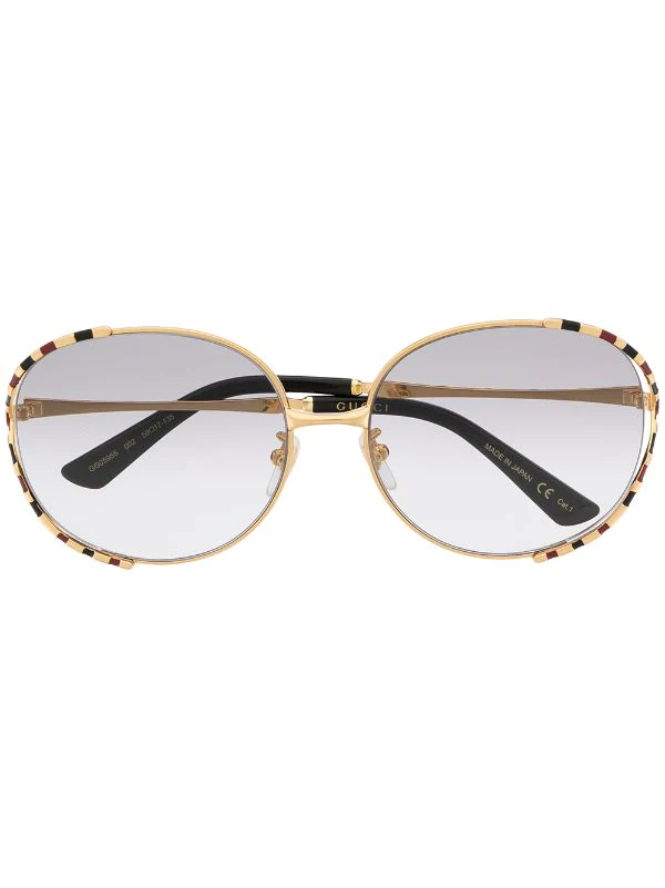Multicolore, monture oversize, verres dégradés, verres filtre UV, plaquettes de nez, plaque logo dorée, détails rayés, branches droites, extrémités incurvées. Ces lunettes sont livrées avec un étui de protection.