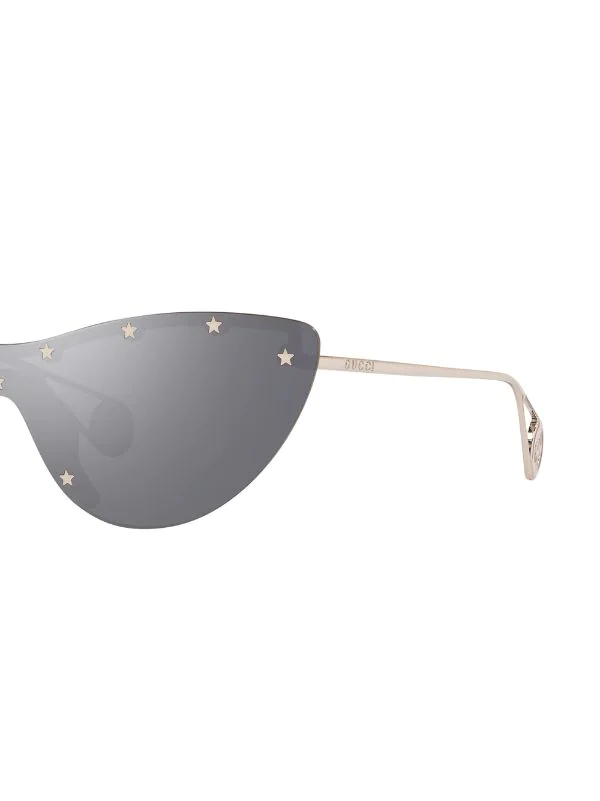 Étoiles métalliques, monture papillon, verres miroirs, extrémités incurvées. Matière : métal. Pour vous aider à prendre bien soin de cet article, il vous parviendra avec un sac de protection.