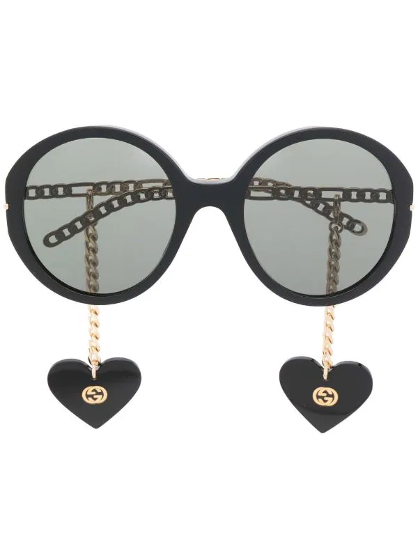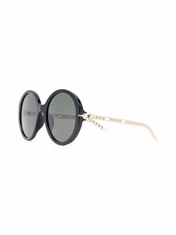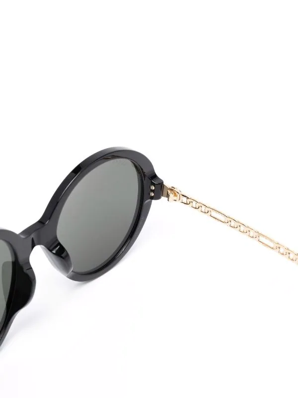Monture ronde, verres teintés, détails de chaînes, finitions en métal doré. Couleur : noir. Matière : acétate.