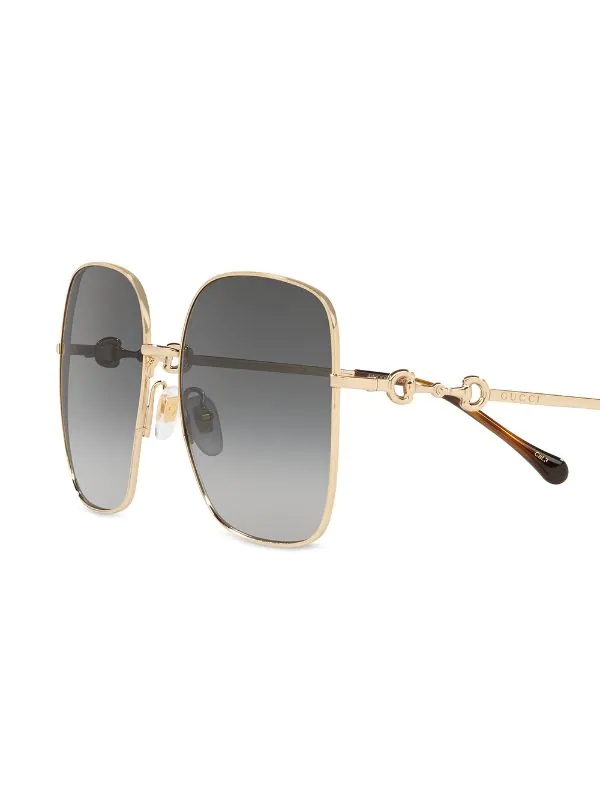 Monture oversize, verres dégradés, détail de mors. Matière : métal. Ces lunettes sont livrées avec un étui de protection.