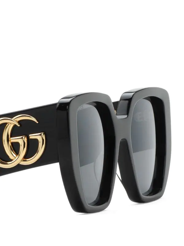 Logo Double G signature, branches oversize, monture oversize, verres teintés, verres filtre UV, extrémités incurvées. Même s’il est évident que vous en prendrez bien soin, cet article vous parviendra dans une boîte de protection.