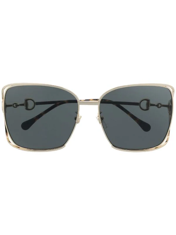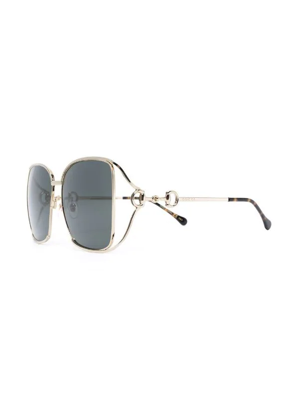 Doré, monture oversize, détail de mors signature, verres teintés, branches sculptées, extrémités incurvées. Ces lunettes sont livrées avec un étui de protection.