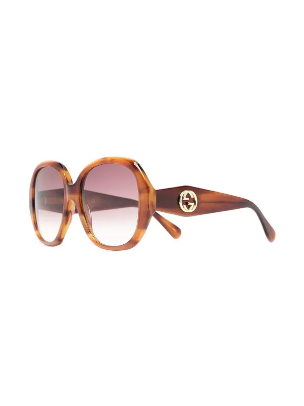 Effet écaille de tortue, monture oversize, monture ronde. Couleur : marron. Matière : acétate.