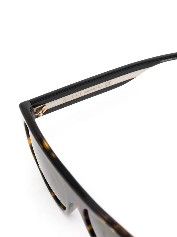 Effet écaille de tortue, logo gravé, monture rectangulaire, verres teintés, verres filtre UV, verre à détail de décalque, branches droites, bordure à rayure Web signature, branches droites. Ces lunettes sont livrées avec un étui de protection.