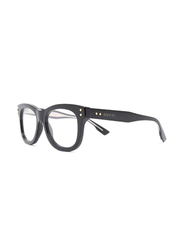 Noir, monture carrée, verres transparents, logo doré, extrémités incurvées. Tous les lunettes de FARFETCH sont vendues avec des verres sans prescription. Ces lunettes sont livrées avec un étui de protection.