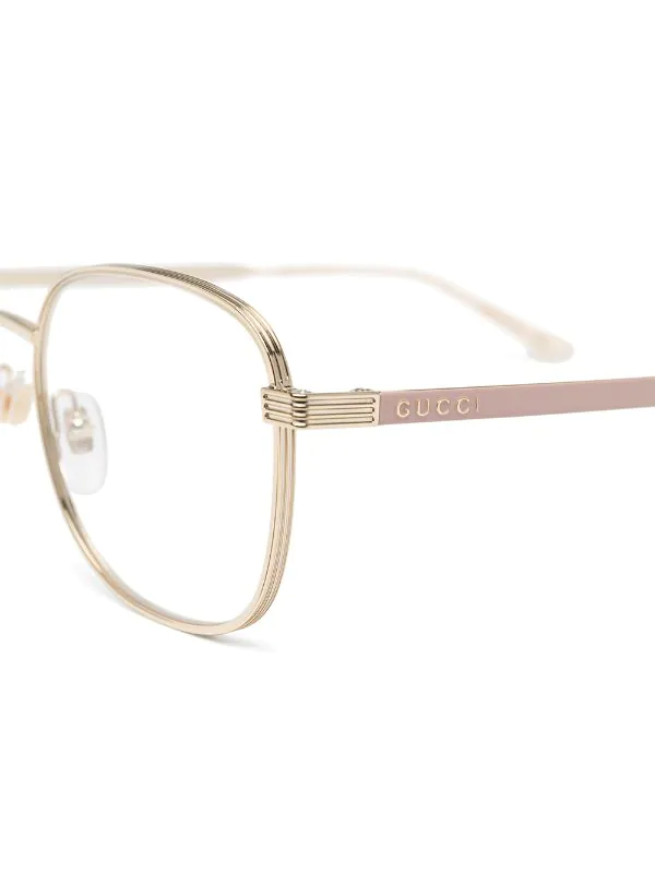 Monture carrée, logo embossé sur la branche, verres transparents, plaquettes de nez. Matière : métal. Même s’il est évident que vous en prendrez bien soin, cet article vous parviendra dans une boîte de protection.. Gardez l’œil ouvert : toutes les lunettes achetées sur FARFETCH sont fournies avec des verres sans prescription.