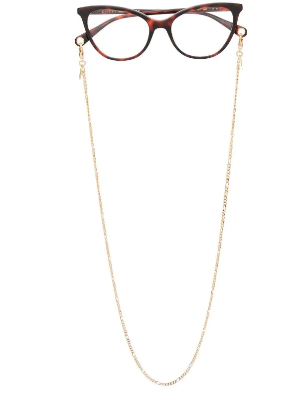 Effet écaille de tortue, monture papillon, verres transparents, plaque logo dorée, lanière autour du cou à maillons, branches droites, extrémités incurvées. Ces lunettes sont livrées avec un étui de protection. Tous les lunettes de FARFETCH sont vendues avec des verres sans prescription.