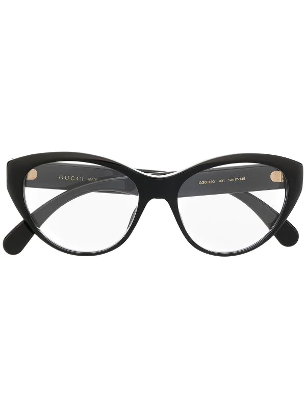 Monture papillon, plaque logo dorée, extrémités incurvées, verres transparents. Couleur : noir. Matière : acétate. Même s’il est évident que vous en prendrez bien soin, cet article vous parviendra dans une boîte de protection..