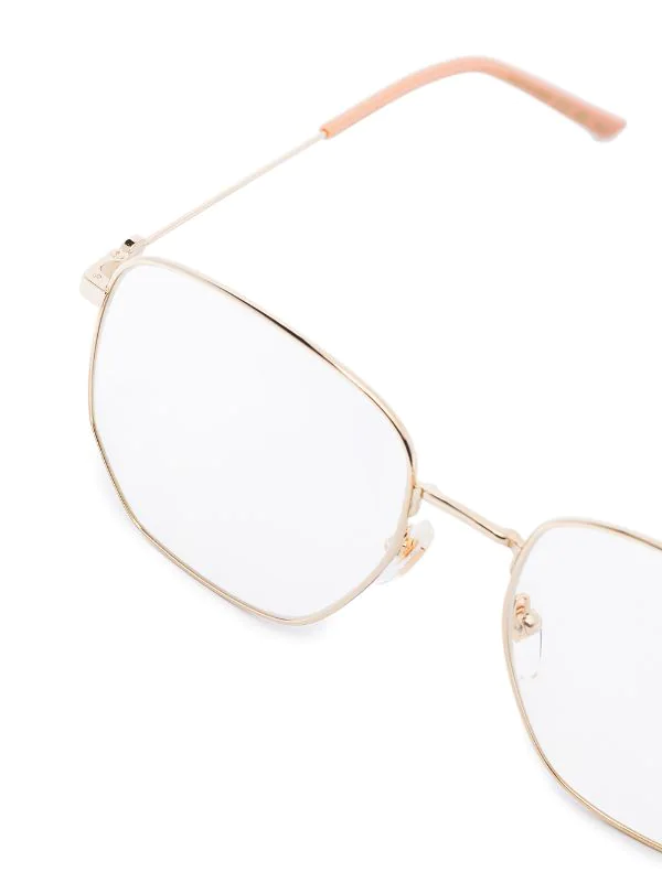 Monture ronde, verres transparents, branches droites, extrémités incurvées. Couleur : or. Matière : métal. Ces lunettes sont livrées avec un étui de protection.
