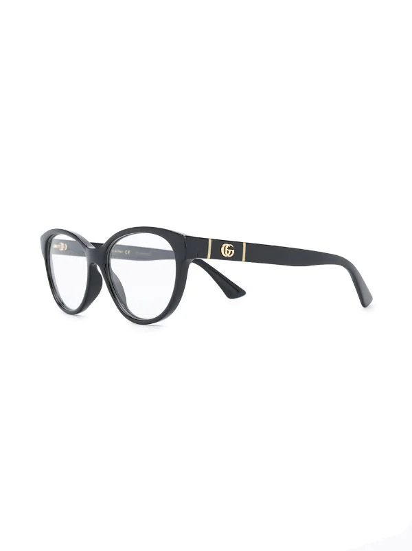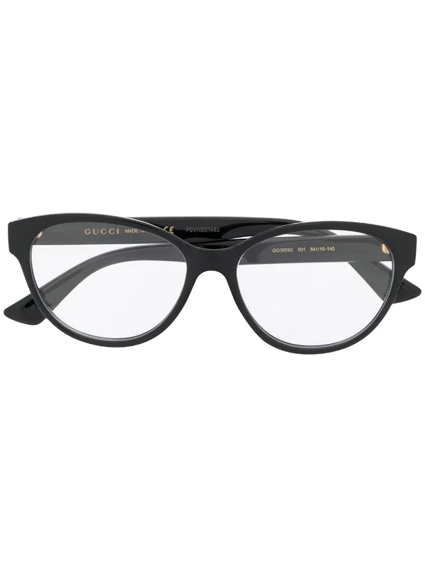 Lunettes de vue GG0633O à monture ovale Gucci Eyewear avec logo sur l’intérieur de la branche, branches droites à extrémités incurvées et détails dorés. Couleur : noir. Ce produit est vendu dans une boîte de protection.