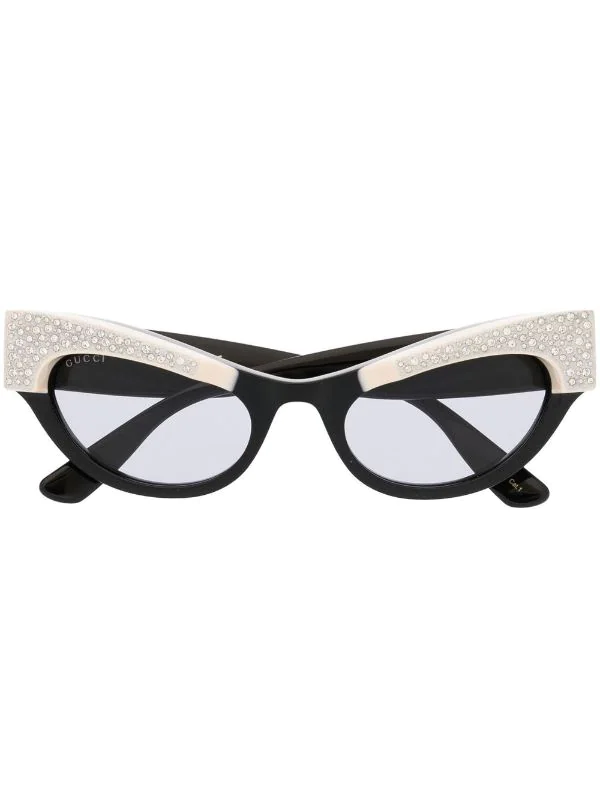 Noir, ornements en pierres, plaque logo sur la branche, monture papillon, verres teintés. Couleur : noir. Ces lunettes sont livrées avec un étui de protection.