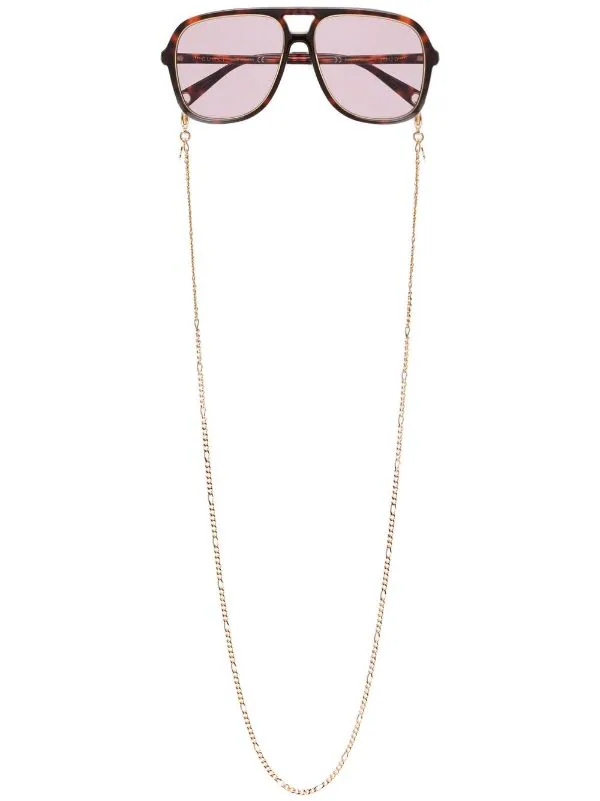 Monture aviateur, effet écaille de tortue, verres teintés roses, branches incurvées. Matière : acétate. Ces lunettes sont livrées avec un étui de protection.