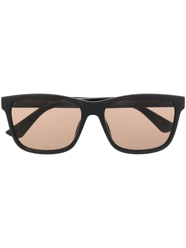 Noir, verres teintés, monture carrée, pont haut, branche à logo imprimé, extrémités incurvées. Ces lunettes sont livrées avec un étui de protection.