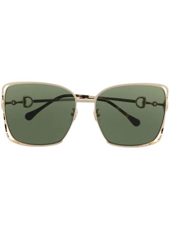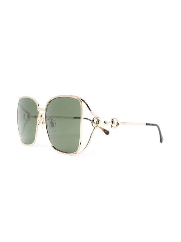 Monture carrée, verres teintés verts. Matière : métal. Ces lunettes sont livrées avec un étui de protection.
