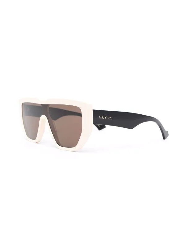 Monture en D, verres teintés marron. Matière : acétate. Ces lunettes sont livrées avec un étui de protection.