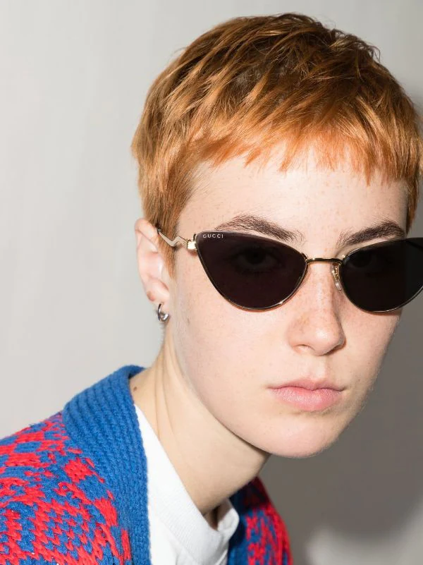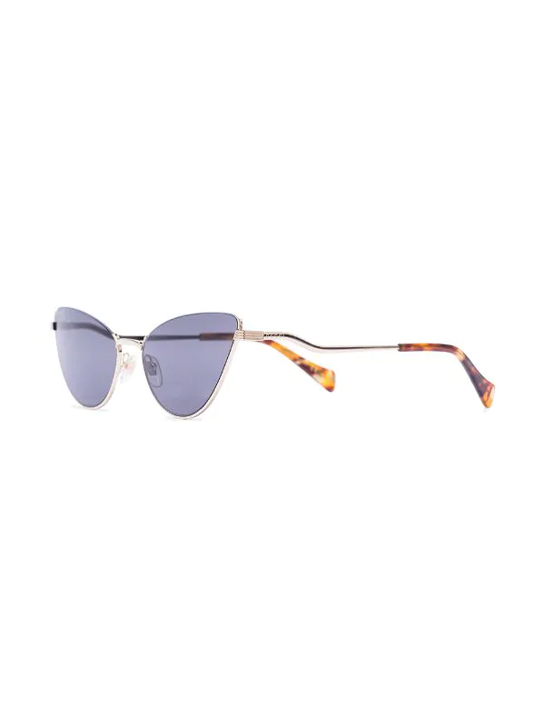 Monture papillon, verres teintés violets, plaquettes de nez, branches sculptées, effet écaille de tortue. Matière : métal. Ces lunettes sont livrées avec un étui de protection.
