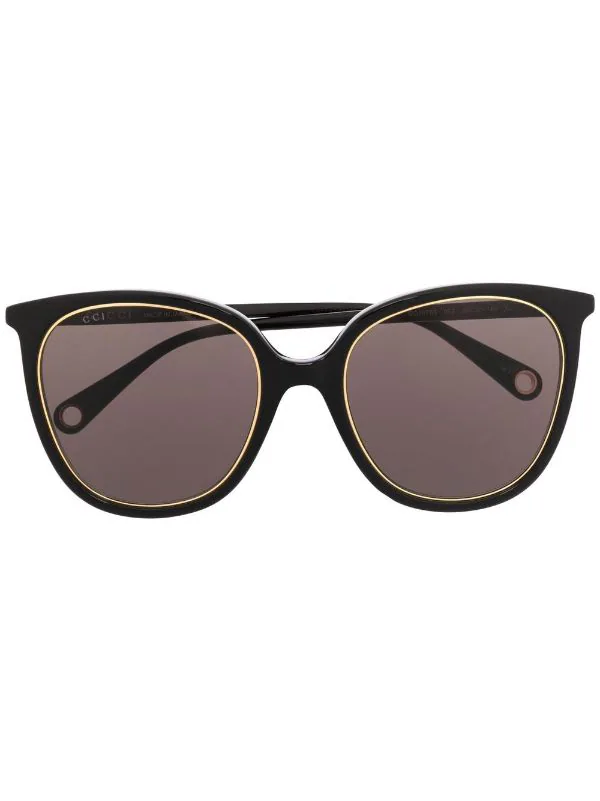 Monture ronde, verres teintés marron, finitions en métal doré. Ces lunettes sont livrées avec un étui de protection.